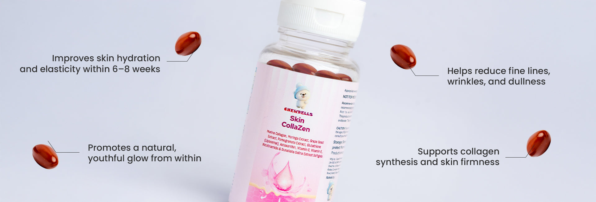 At Chewbells, we believe beauty starts beneath the surface. Skin CollaZen nourishes your skin from within — revealing a firmer, smoother, and more luminous you.